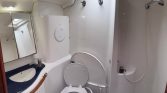 Baños: Equipado con amplios compartimentos de aseo que incluyen ducha independiente, inodoros marinos y acabados en gelcoat blanco para un mantenimiento sencillo.