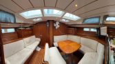 Salón principal: Un espacio diáfano inundado de luz natural gracias a sus múltiples escotillas cenitales y portillos laterales. Dispone de una gran mesa de comedor con sofás envolventes en tapicería clara.